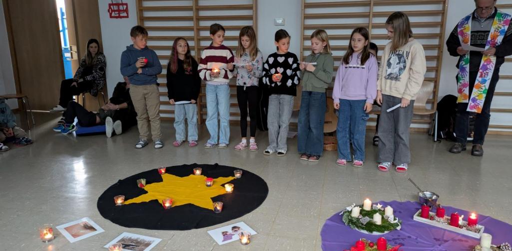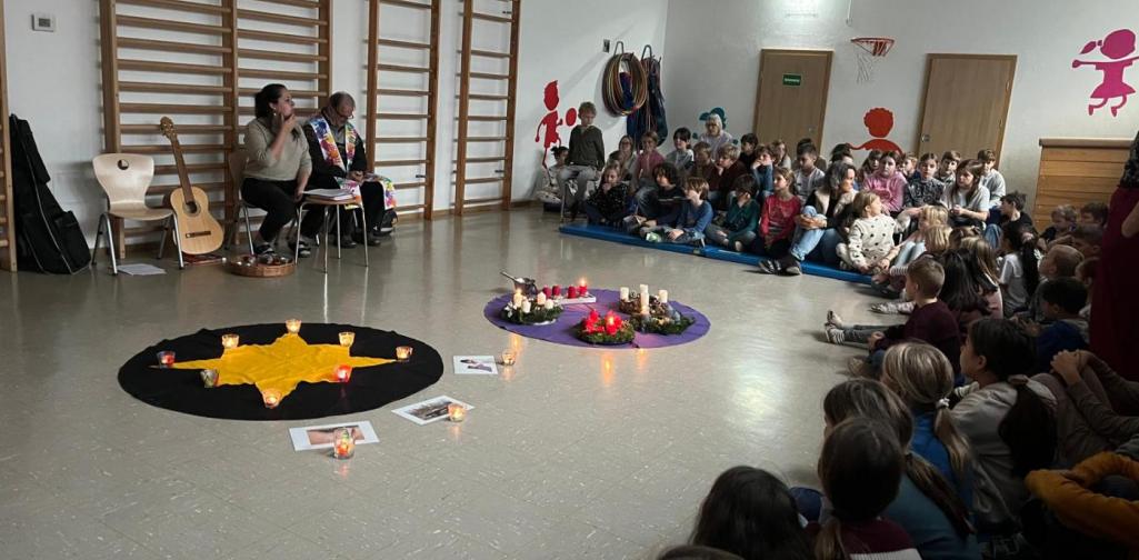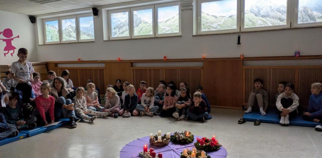 Am 27.11. fand unsere Adventkranzsegnung statt. Josef Scheiring erzählte uns von der Bedeutung des Adventkranzes, Frau Thöni las eine Geschichte vor und die Kinder der einzelnen Klassen bereicherten die Segnung. Mit passenden Liedern wurde die Adventkranzsegnung umrahmt.