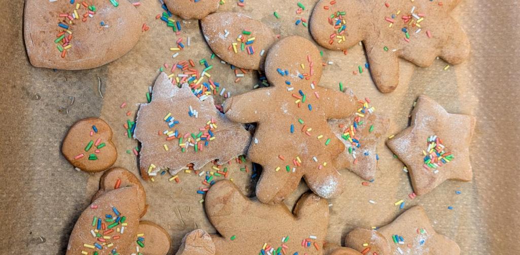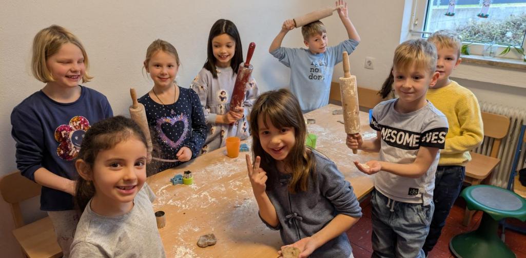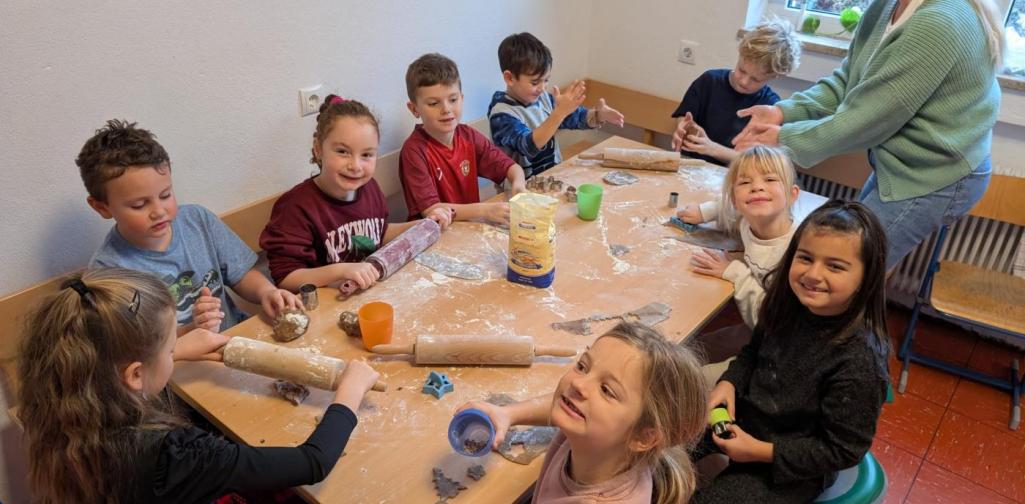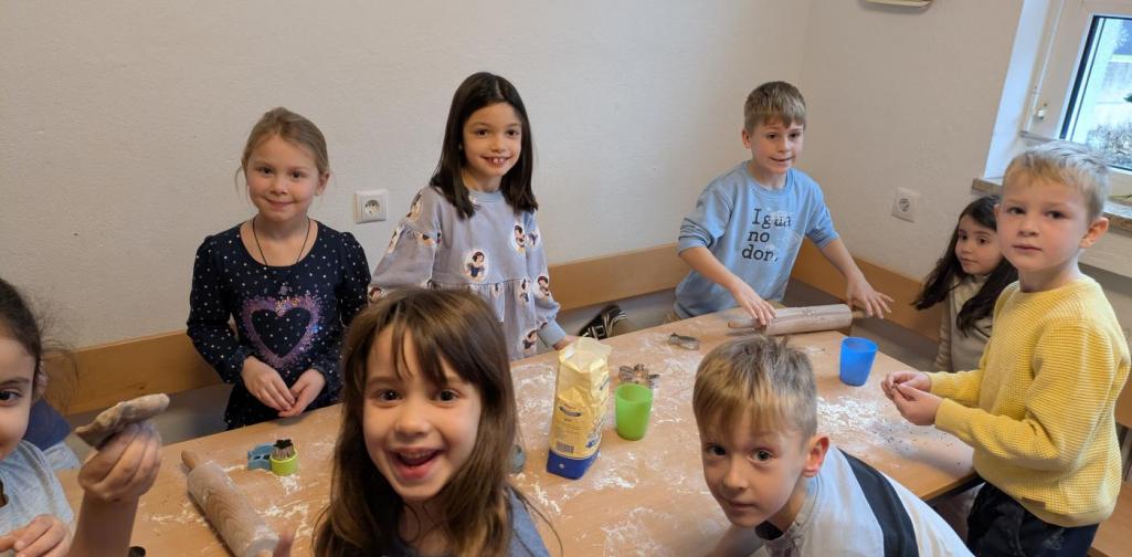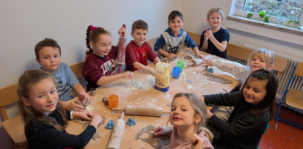 Deshalb waren die Kinder der 1. Klasse fleißig und haben in der Küche Teig geknetet, ausgerollt, Kekse ausgestochen und verziert. Nach dem Backen wurde der ein oder andere Keks natürlich gekostet.