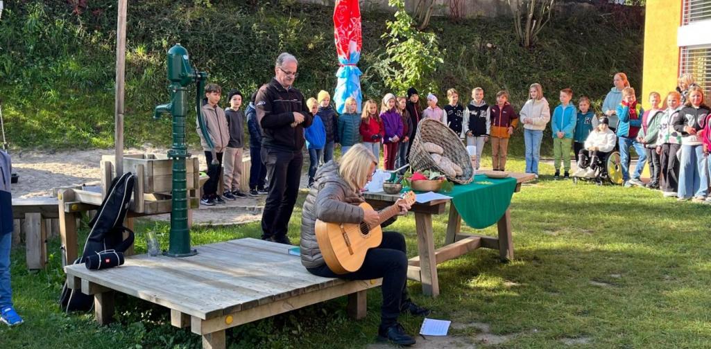 Gemeinsam sangen wir stimmungsvolle Lieder, die das Fest zu etwas ganz Besonderem machten. Es war ein fröhliches Beisammensein, bei dem wir nicht nur das leckere Brot genießen konnten, sondern auch Zeit hatten, um dankbar zu sein – für die Ernte, die Gemeinschaft und das schöne Wetter.